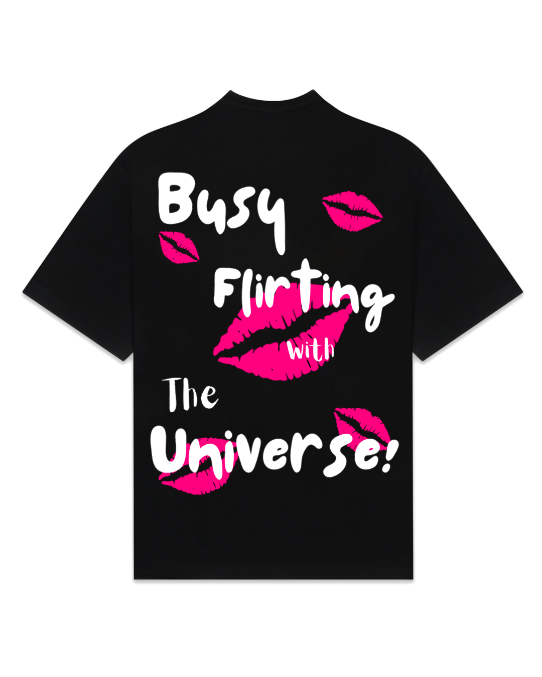 You're a cosmic charmer. The Cozyvibe tee features a bold back graphic that screams your agenda: "Busy Flirting With The Universe!" with vibrant pink lips sprinkled across the design. Effortlessly cool, infinitely charming.